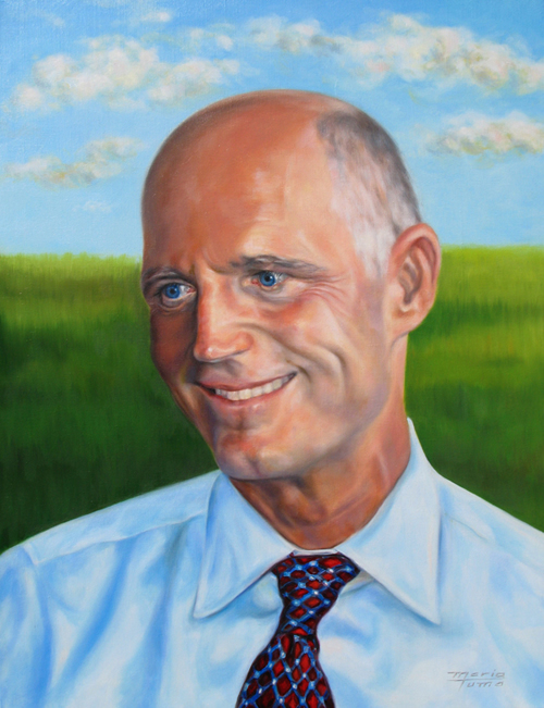 Governor of Florida Rick Scott 24" x 18" Oils on linen Presented to him on Saturday August 2, 2014 in the campaign office in Hialeah, Florida. When he saw it he said: WOW!