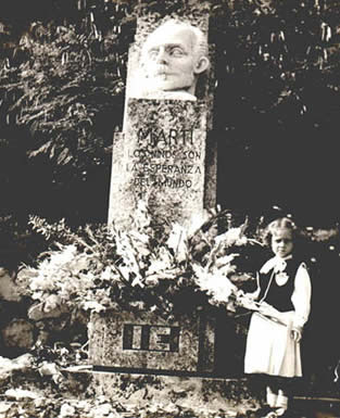 "Honrar, honra" José Martí La artista pintora cubana: MARIA TUMA a los 5 años de edad en el Instituto Edison, le lleva flores a Martí. Here I was 5 years old in Instituto Edison in Habana, Cuba. Look at my left hand's expression, I was looking at the desperate photographer rushing to make another dollar. However, I was deep in the emotion of bringing flowers to Martí. OH! How I love your philosophy and poems...apostle! Next |