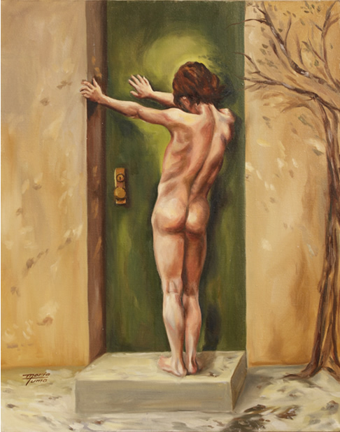 "Love Locked Out" after Anna Lea Merritt 18" x 24" Oil on Canvas