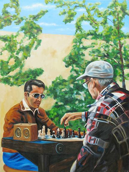 Jugadores de ajedres en la Calle 8 oleo por MARIA TUMAArtista Cubana