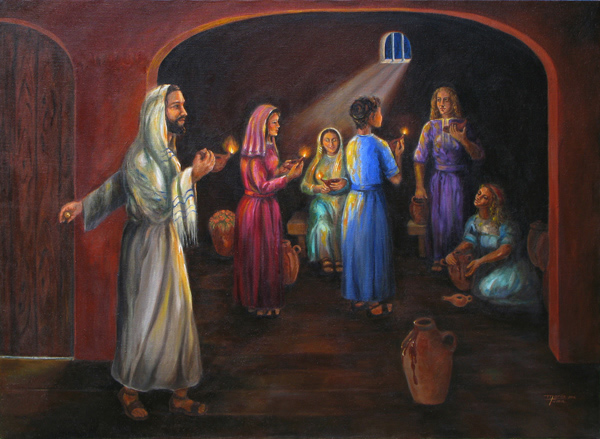 previous "Five Wise Virgins" 36"x48" Oils on Belgium linen next Based on the Parable of the 10 virgings in Mathew 25:1 About the 5 virgins that were ready waiting for His coming, and five were left out ----- found in Mathew 25 https://www.biblegateway.com/passage/?search=Matthew+25