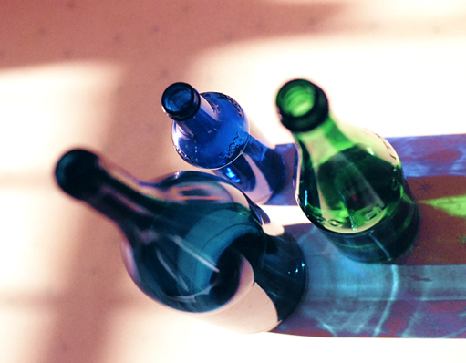 "Beauty is in the eyes of the beholder" Bottles on the kitchen table. Botellas en la mesa de la cocina