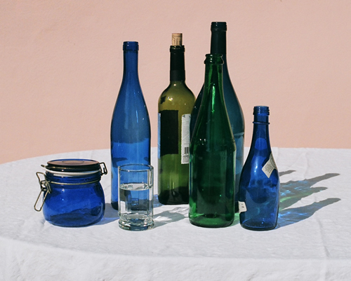 "Blue and green bottles on Table" photo by MARIA TUMA