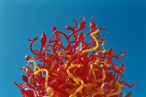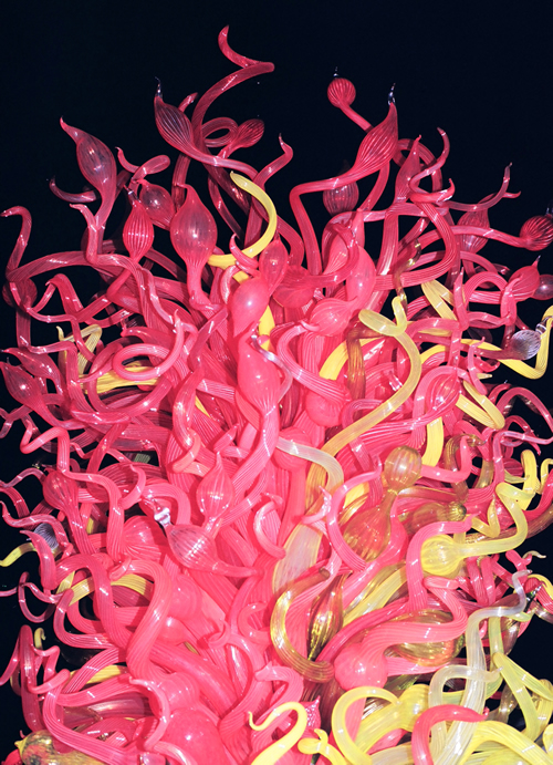 Chihuly's red and yellow glass sculpture at Fairchild Tropical Garden.