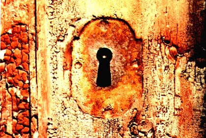 In my trip to Europe, and old barn in the back of a castle, had a very large key hole, the dried paint also attracted me to photograph this. Using slides, I scanned it in PHOTOSHOP and brought it to Fireworks, to inset it in Dreamweaver...This photo has traveled long, and me too, to get it here for you to see it. You may use my photos with permission, or purshasing them. Try asking first. Thankyou. María Tuma. EMAIL me: mariatuma@ifriendly.com |