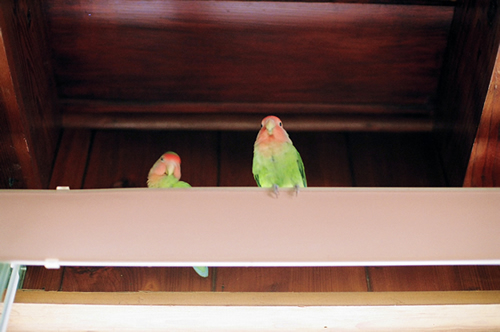 Curious love bird, he was wondering what is that BLACK thing in front of my face?